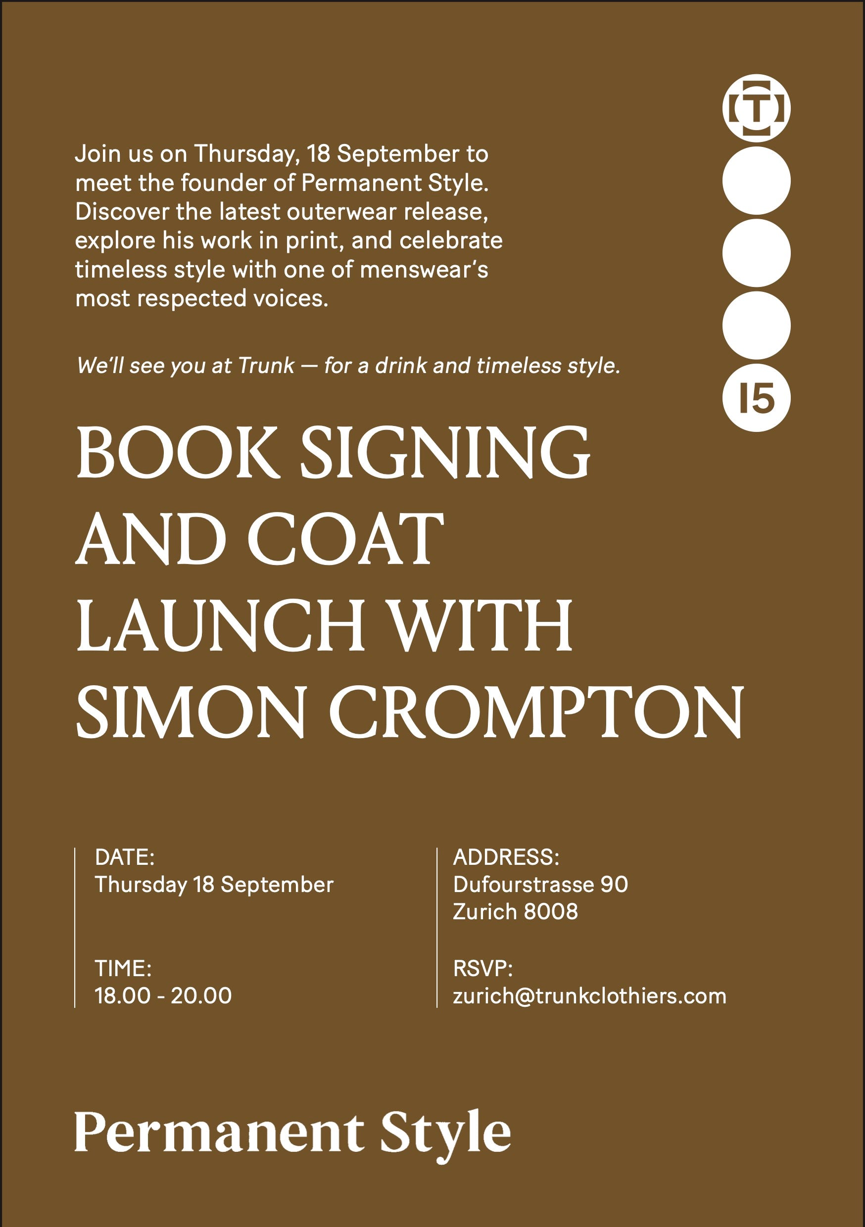 We’re pleased to welcome Simon Crompton, founder of Permanent Style and one of the most respected voices in classic menswear, to Trunk Zürich.
