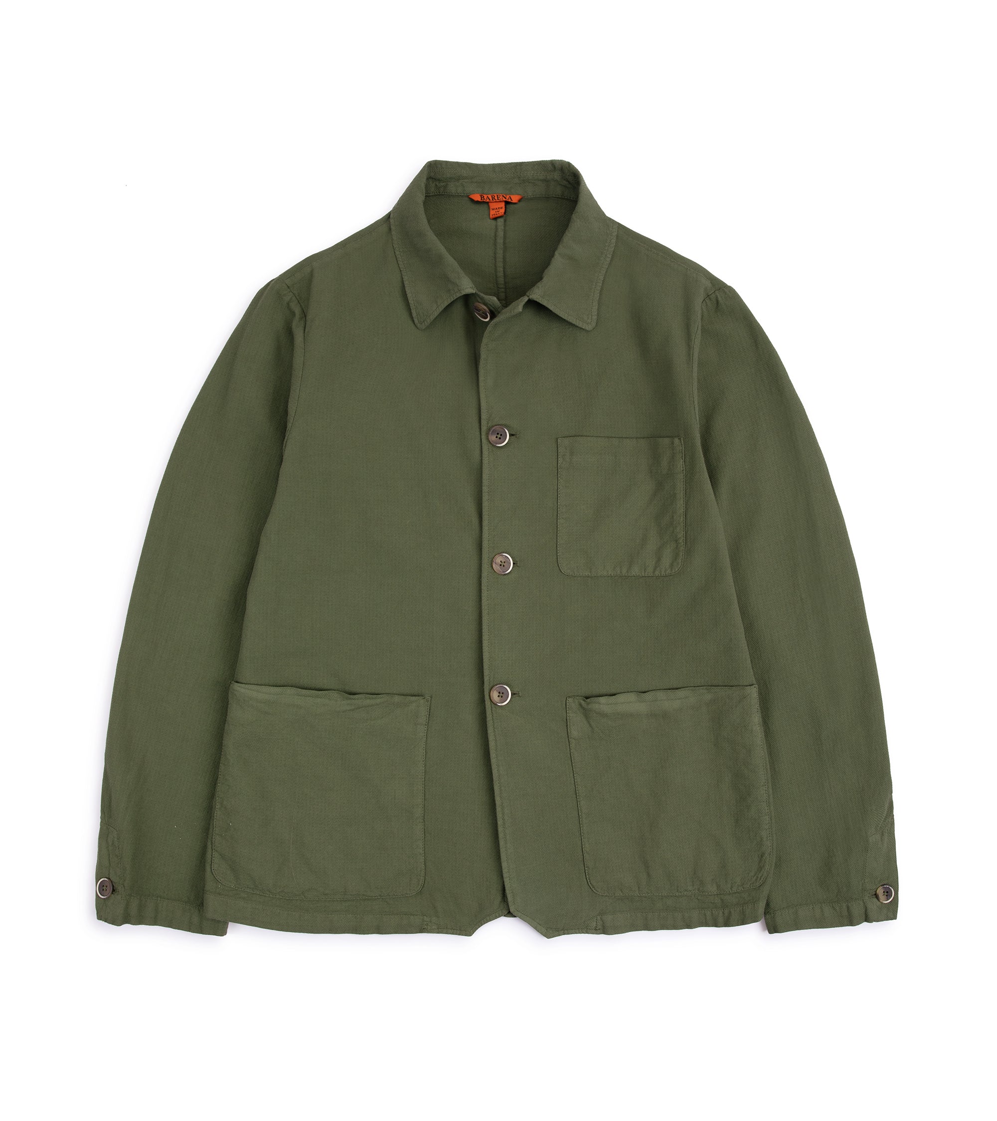 Expertly crafted in Italy, the Barena Visal Arela Cotton Shirt Jacket is the perfect lightweight piece for spring and summer. Its workwear-inspired design features a spread collar, three patch pockets, and an angled front cut, all made from a unique crepe whipcord cotton fabric. This fabric not only offers a subtle crinkled texture but also provides breathable comfort, making it ideal for warmer weather. Unlined for added breathability, this jacket can be easily worn over a shirt or layered under outerwear, offering a polished yet functional look that transitions seamlessly through the seasons.