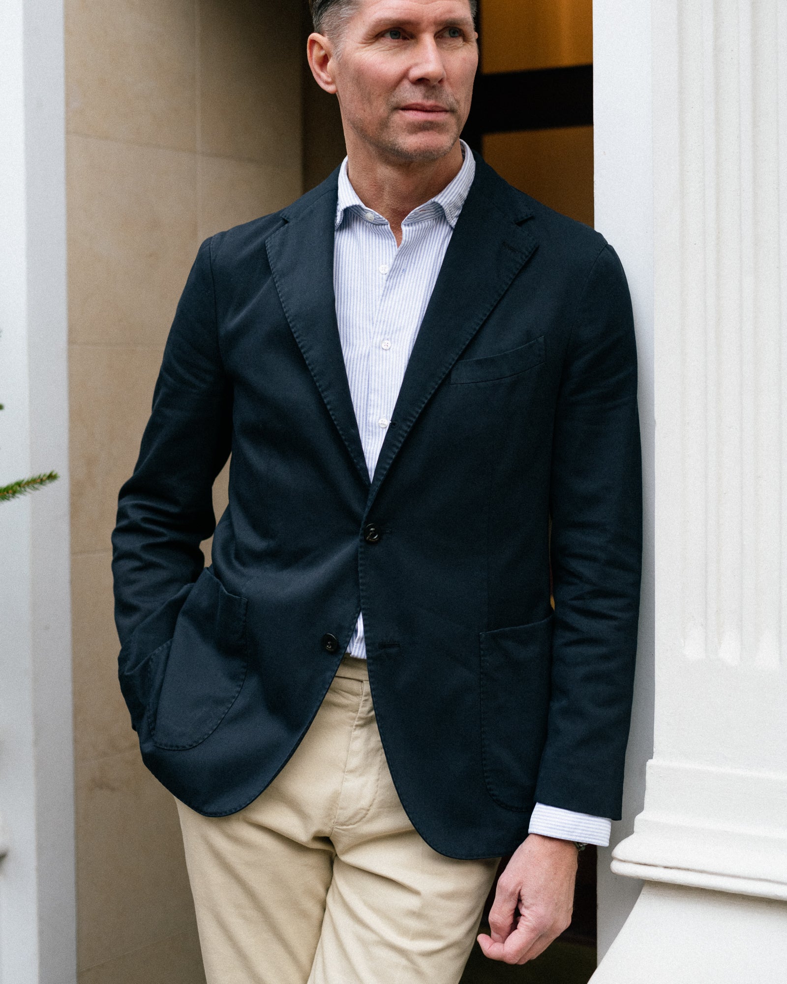 Unstructured tailoring is particularly useful for the frequent traveller, Mats says. ‘I always make an effort to travel with carry-on only to avoid having to wait for my luggage on the other end of a flight. What I tend to wear and travel with needs to be easily mixed and matched, and this is why unstructured tailoring is a perfect fit for me.’