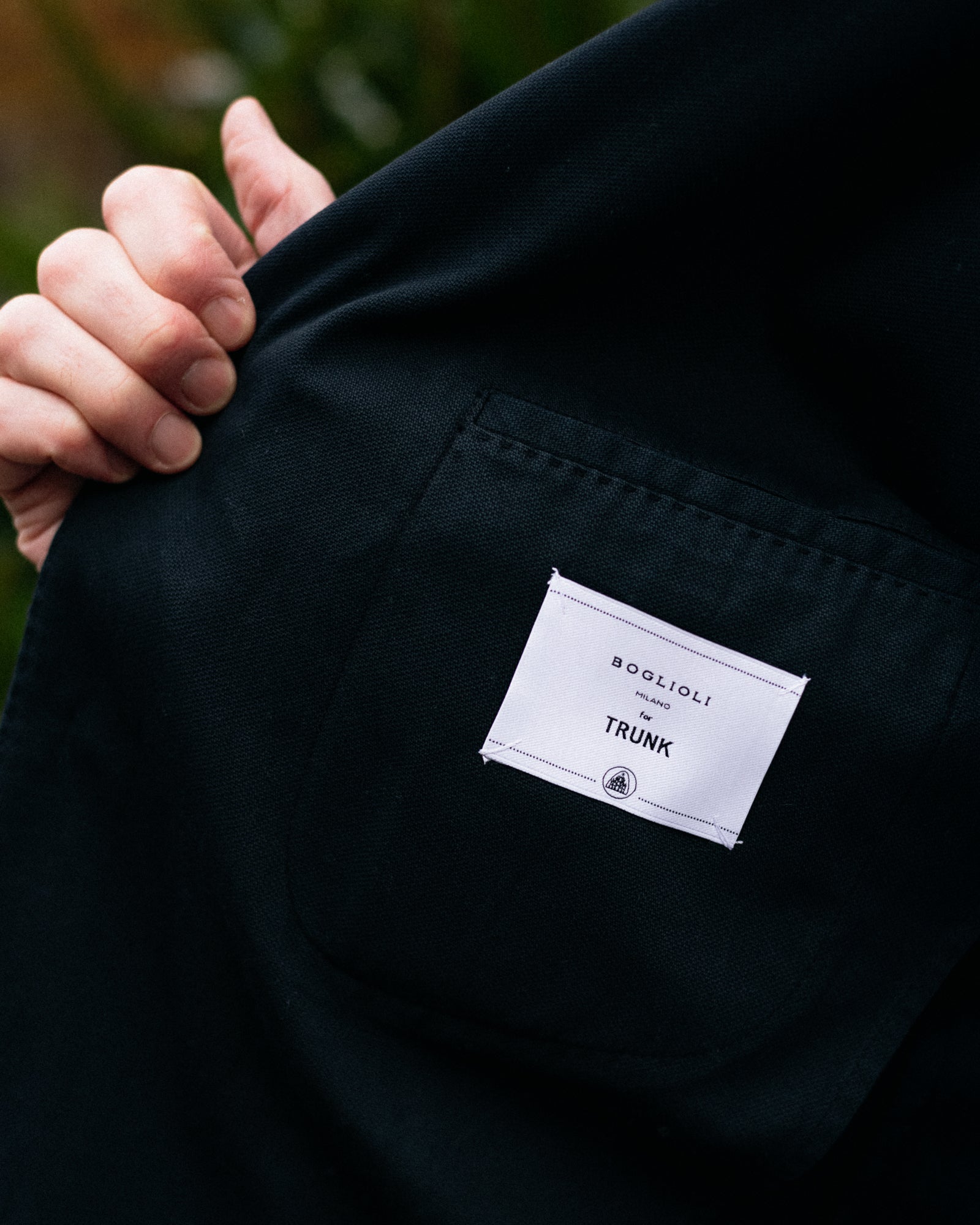 This season, Trunk is curating a range of K-Jackets in summer-ready cotton and linen fabrics (with trousers available separately), alongside the travel suit in tropical wool, and a double-breasted version in classic wool hopsack. The exclusive Boglioli for Trunk jacket in both navy and biscuit hopsack, as well as the navy piqué version, has proven especially popular with customers, Tim says. 'Because it’s a Trunk special, we have to order in higher quantities than normal, but the last time an order arrived, I was amazed at how quickly they disappeared!'