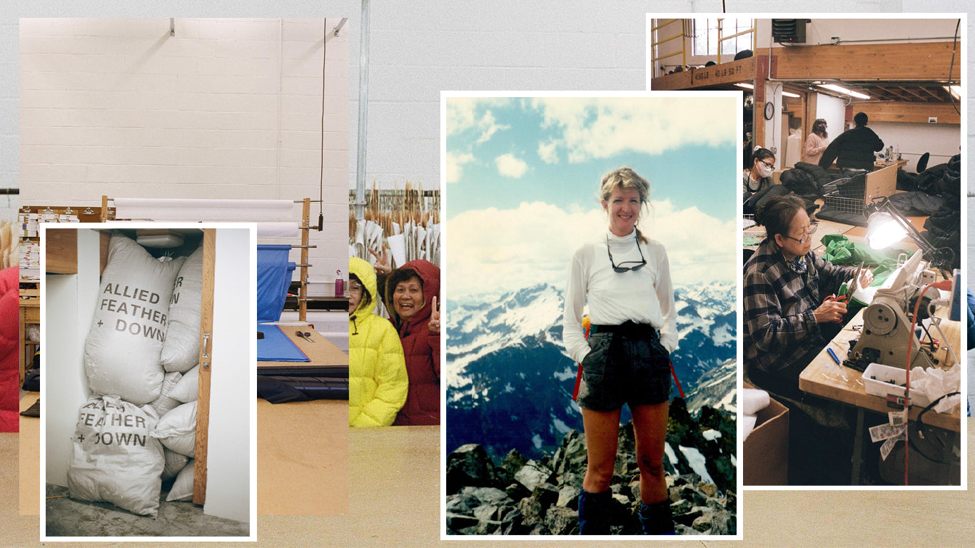 Crescent Down Works traces its roots back to Anne Michelson’s early work with outdoor clothing giant Eddie Bauer, where she helped set up their very first down testing lab. Her expertise in measuring down and assessing loft quickly made a mark on industry standards, shaping the way quality down is tested and understood today. Inspired by this deep knowledge, Anne went on to create her own line of down jackets under the Crescent Down Works name, combining her technical know-how with the designs that were dominating outdoor clothing at the time.