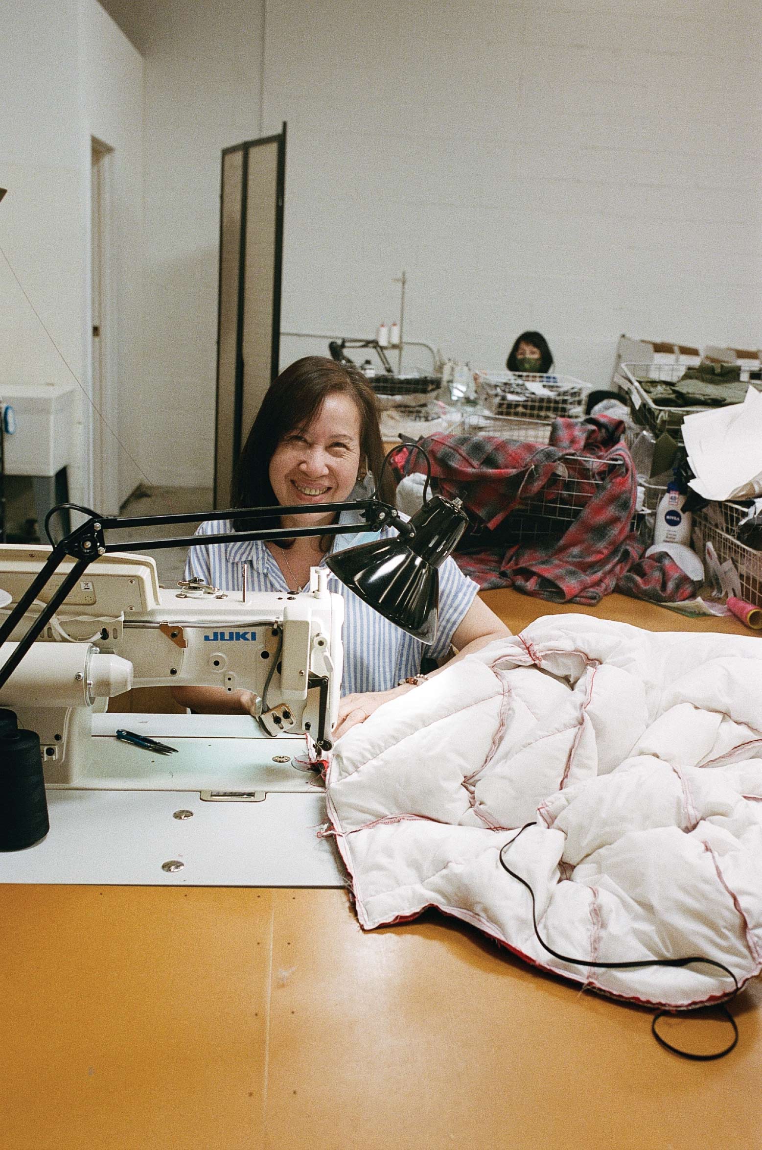 After showing at trade shows, Crescent Down Works was quickly picked up by stores in Italy and Japan, before wholesaling became their primary focus in 1980. Their first factory in Seattle's Capitol Hill neighbourhood was a true family affair, with Anne’s children, Annie and Adam, growing up in the factory alongside the team of sewers.