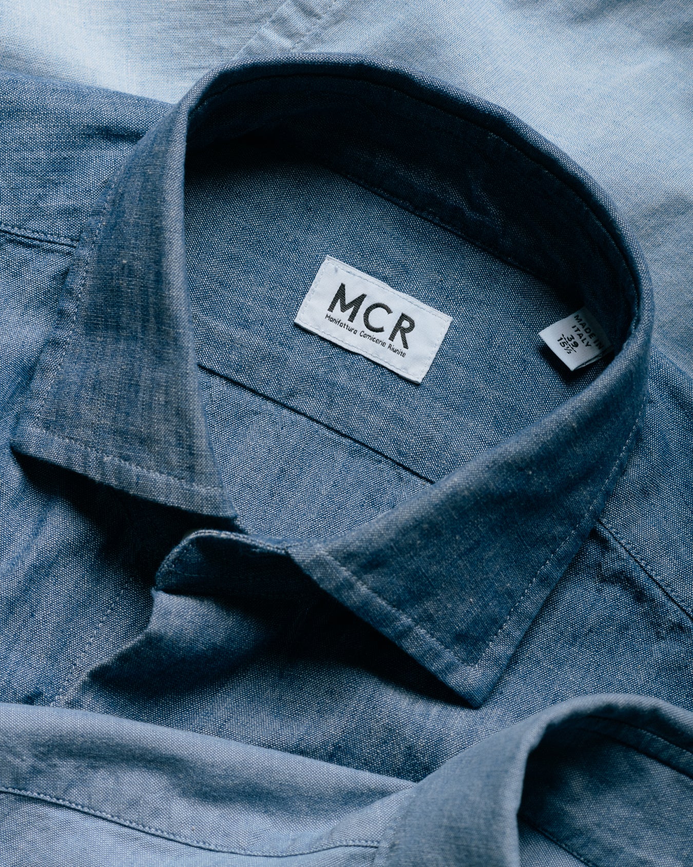 One of our best selling shirts, this MCR chambray shirt is cut and tailored in Italy from a Japanese cloth that is, in our opinion, one of the best. It has a substantial weight that makes it perfect for year-round wear and a delightfully slubby handle that provides soft texture and warmth. Like the majority of shirts we offer, it's neither too smart nor too casual, and can be worn (as we often do) under a tailored or with denim jeans and a field jacket.