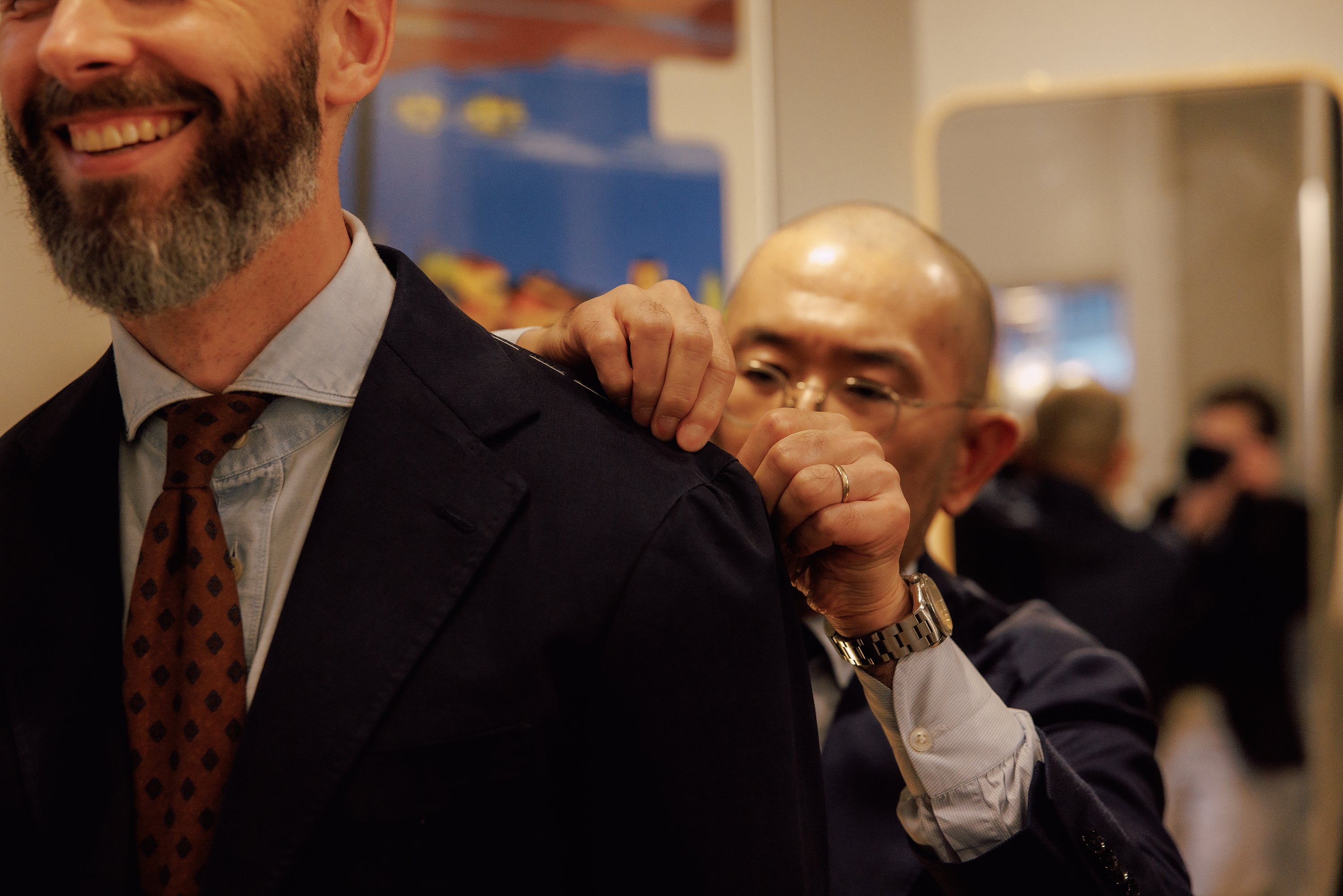 As always, it was a joy to work alongside Hidetoshi Sasamoto, whose expertise and passion for tailoring bring the brand’s philosophy to life. Over the course of the event, guests explored new fabrics, discussed fits and details, and placed custom orders — all while sharing an appreciation for timeless, well-made clothing.