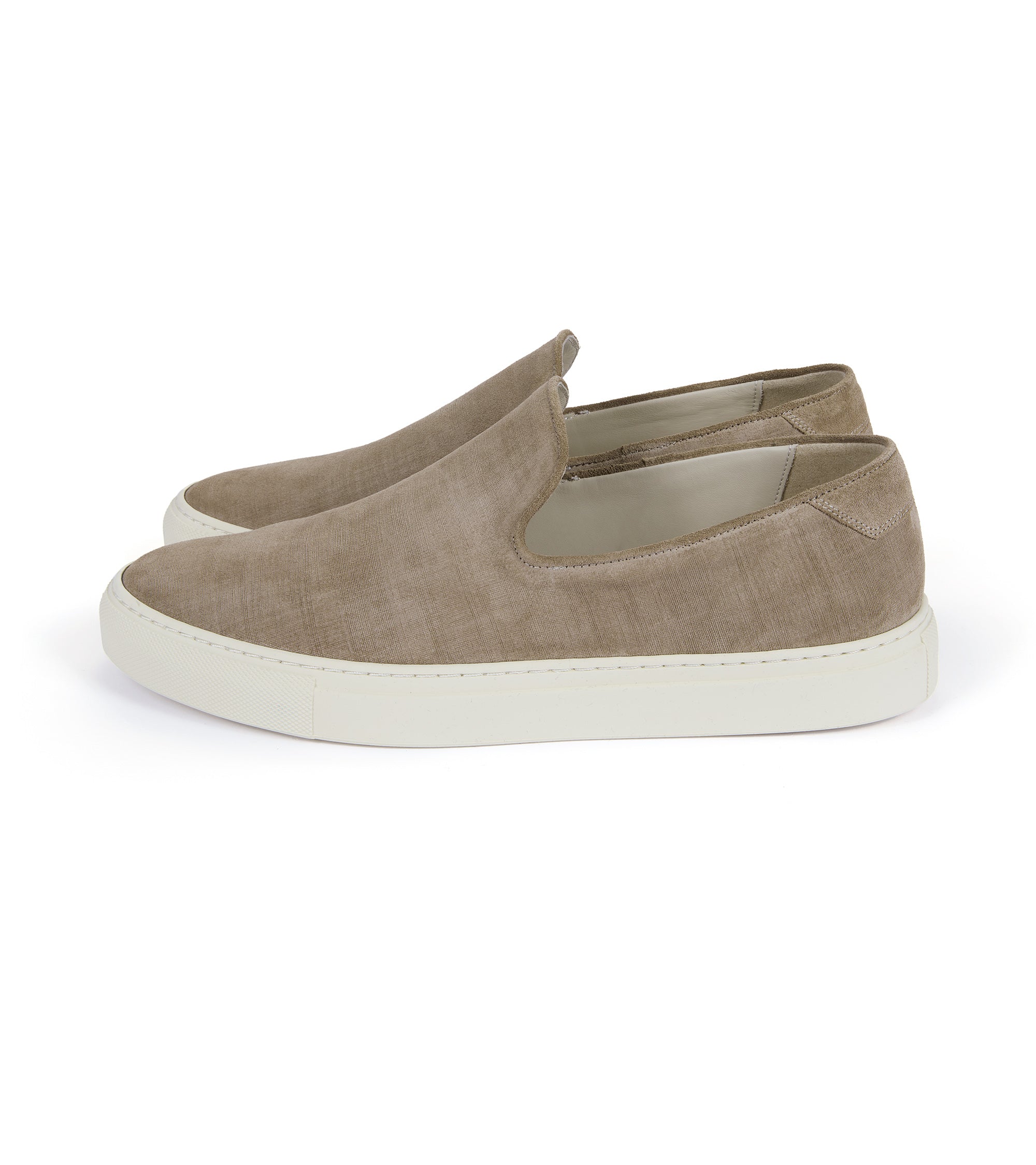 Crafted in Portugal, the Jetty is CQP's signature slip-on sneaker, blending vintage-inspired design with modern craftsmanship. To achieve a relaxed, timeless look, CQP sourced a suede material that mimics the texture and appearance of cotton canvas, giving it the effortless appeal of classic slip-ons while maintaining the luxurious feel and durability of suede. Featuring a rubber sole and leather lining, these sneakers promise lasting comfort and style throughout the season.