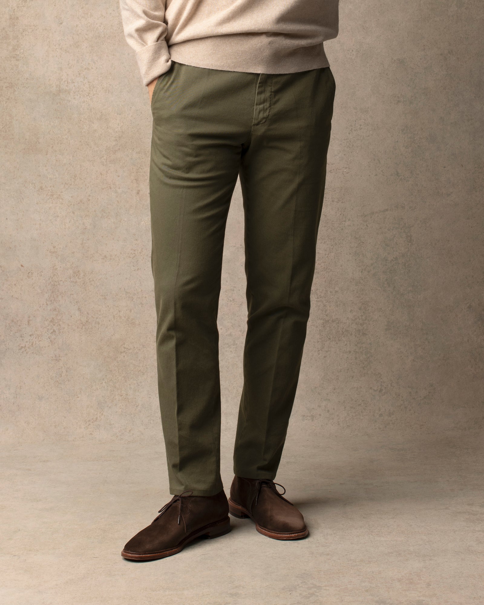 Trunk Palmer Flat Front Cotton Twill Trousers: OliveTrunk Palmer Flat Front Cotton Twill Trousers: Olive